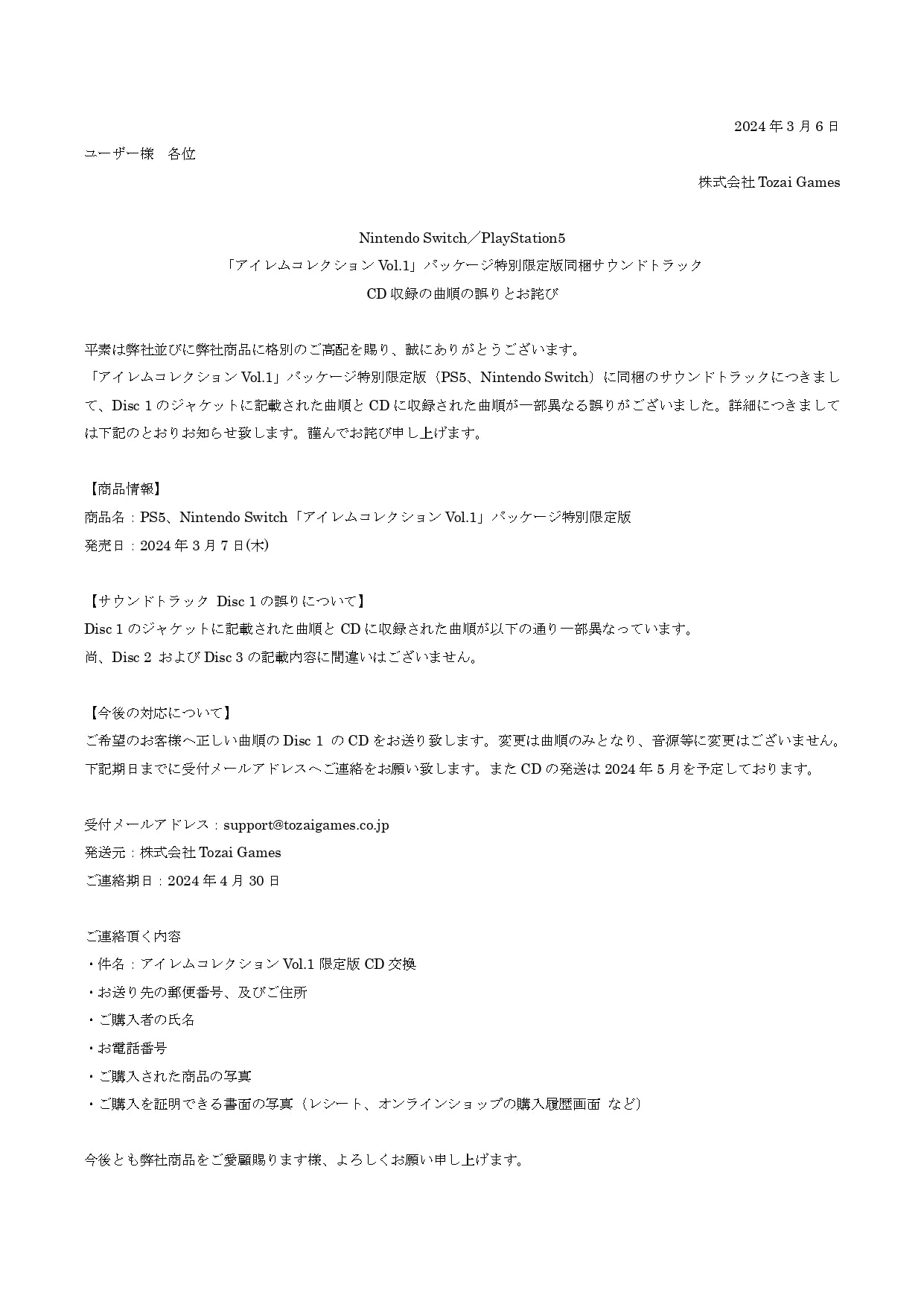 | 商品名 | 【新品】アイレムコレクション Vol.1 限定版 |
